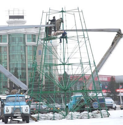 - Работы Монтаж елки и украшений